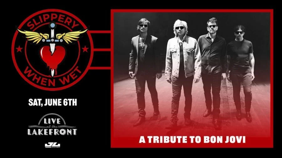 Live at the Lakefront, Harbor Country Adventures, and JL Entertainment present Slippery When Wet: A Tribute to Bon Jovi at the Millennium Plaza Bandstand on Lake Michigan! Doors open at 7:00 PM with the show starting at 8:00 PM. All ages welcome - children under 12 are free with an adult. VIP tables and tickets are sold in pairs and include reserved seats and table service. Free parking on site, full bar available, and ADA accessible. Lawn chairs and blankets welcome in the designated section. Rain or shine - except in the event of severe weather!