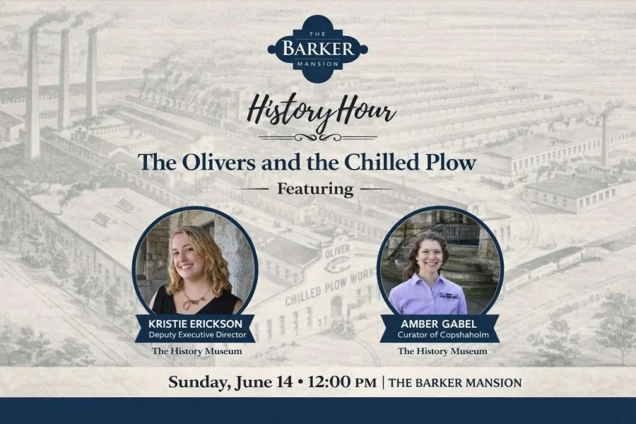 Presenters Kristie Erickson, Deputy Executive Director of The History Museum, and Amber Gabel, Curator of Copshaholm, will cover the history of the Oliver Chilled Plow Works, the Oliver family legacy, and their South Bend estate known as Copshaholm. The program runs from 12:00 to 12:45pm.