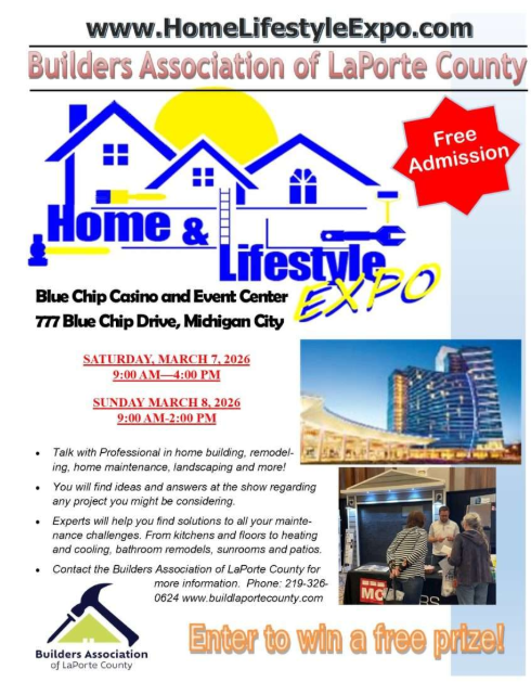 For more information, contact the Builders Association of LaPorte County at 219-326-0624 or visit www.buildlaportecounty.com.