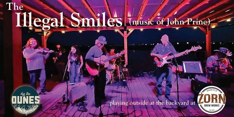 Dig the Dunes is thrilled to welcome The Illegal Smiles back to Michigan City for an outdoor concert celebrating the music of the amazing singer/songwriter John Prine! The Illegal Smiles are a group of Chicagoland songwriters and musicians with a deep love for Prine's songs, from his stunning debut to The Tree of Forgiveness and everything in between. The beauty of Prine fans is that we know the words, whether they make us sob or smile. Seating options include tables, picnic tables, or lawn seating (bring your own chair). Doors open at 5 PM, show starts at 7 PM with one 15-minute intermission. No refunds 7 days prior to the event.