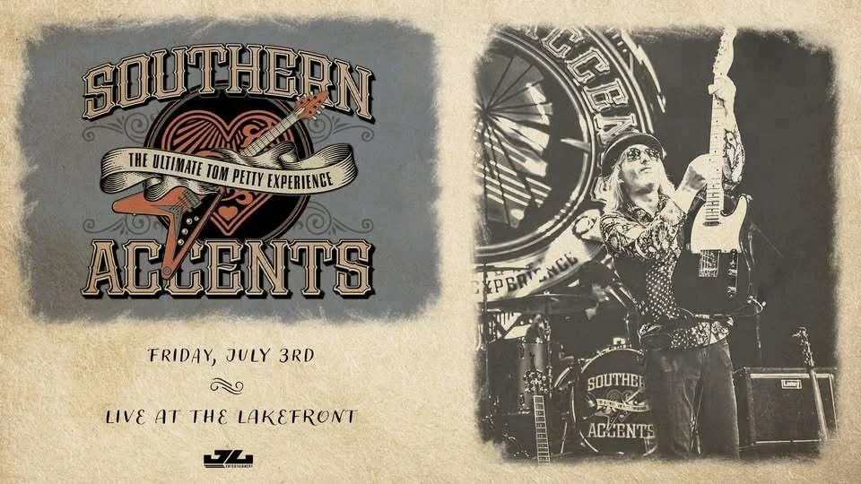 Live at the Lakefront, Harbor Country Adventures, and JL Entertainment present Southern Accents: Tribute to Tom Petty and The Heartbreakers at the Millennium Plaza Bandstand on Lake Michigan! Doors open at 7:00 PM with the show starting at 8:00 PM. All ages welcome, children under 12 are free with an adult. VIP tables and tickets are sold in pairs and include reserved seats and table service. Free parking on site, full bar available, and ADA accessible. Lawn chairs and blankets welcome in the designated section. Rain or shine except in the event of severe weather!