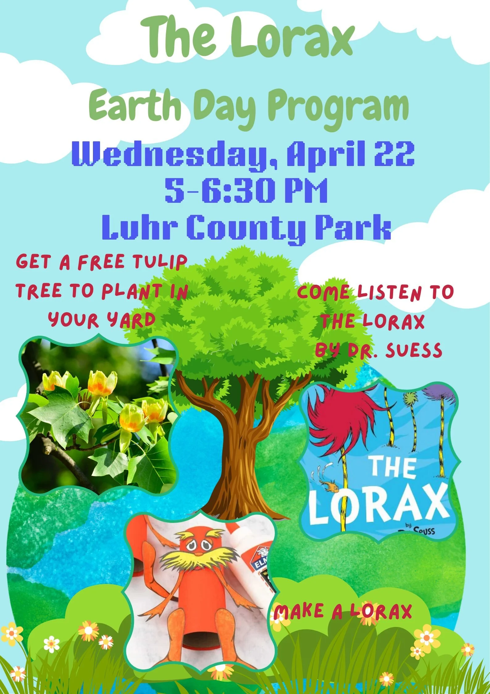 Celebrate Earth Day with at Luhr County Park! We'll read The Lorax by Dr. Seuss, make a Lorax-themed craft, take a short hike through the woods, and every attendee gets a free Tulip Poplar tree to take home and plant in their yard. A fun and meaningful way to honor Earth Day!
