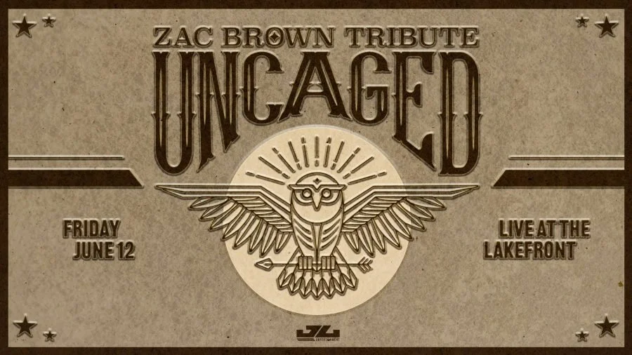 Live at the Lakefront presents UNCAGED, the premier tribute to Zac Brown Band, dedicated to bringing the soul, musicianship, and feel-good energy of one of country music's most beloved groups to the Millennium Plaza Bandstand! Celebrating the Grammy-winning sound of Zac Brown Band, UNCAGED delivers the signature blend of country, Southern rock, bluegrass, and Gulf-coast vibes that fans know by heart. With rich harmonies, precision instrumentation, and a deep respect for the original recordings, the band recreates iconic hits along with fan-favorite deep cuts. Each member of UNCAGED is a seasoned musician, together creating a warm, approachable, and unforgettable concert experience for audiences of all ages. Doors open at 7:00 PM, show starts at 8:00 PM. Children under 12 are free with an adult. VIP tables and tickets sold in pairs with reserved seats and table service. Free parking, full bar, and ADA accessible. Rain or shine except in the event of severe weather!