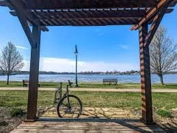 ~2 acres; waterfront park with benches, picnic areas, splash pad & fishing access.